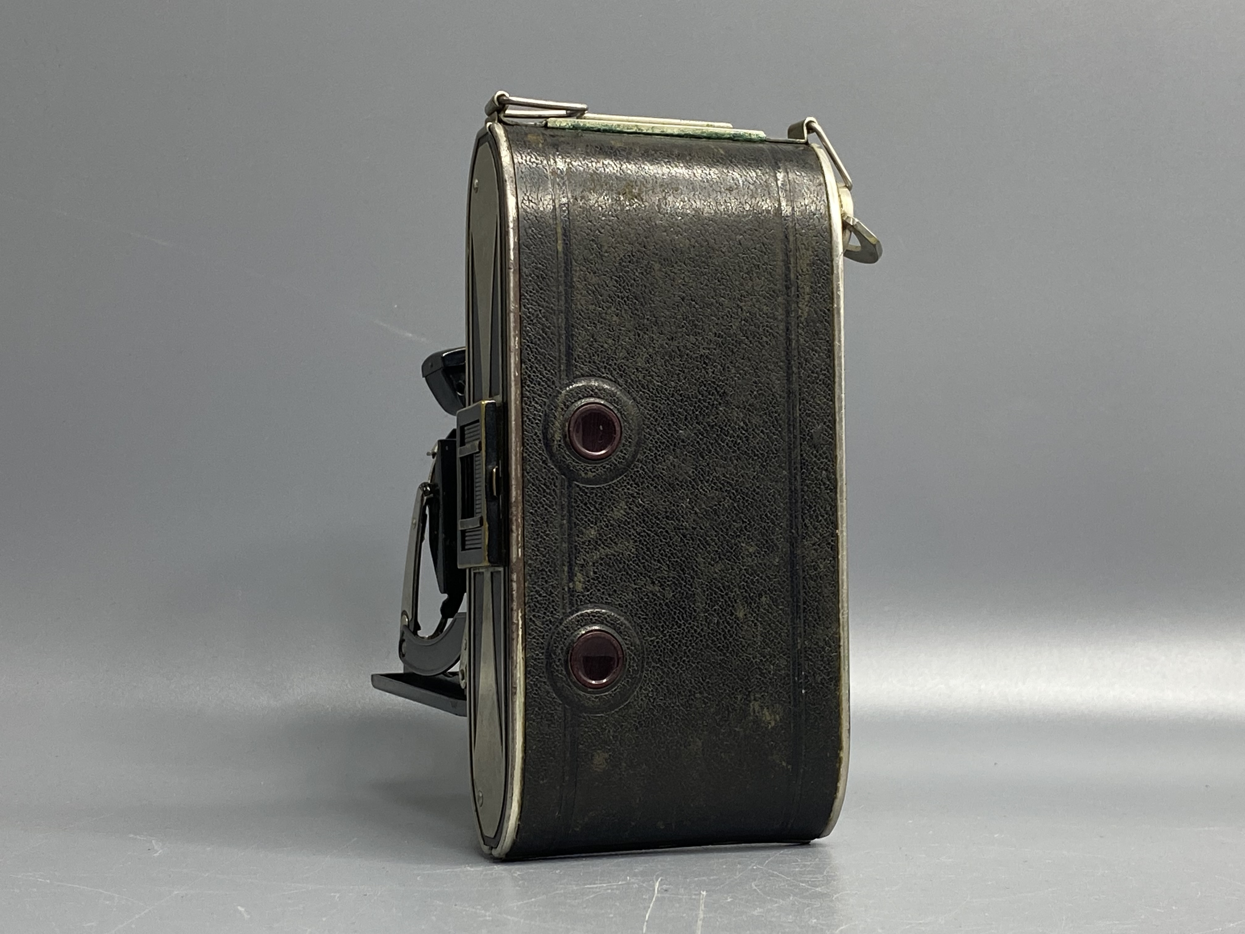 Складная плёночная камера Agfa Billy-Record — классическая ретро-модель, сочетающая историческую ценность с простотой аналоговой съёмки. – Коллекционная ценность: Один из знаковых аппаратов Agfa 1930–1950-х годов. Ценится коллекционерами за аутентичный дизайн и редкость на рынке антикварных камер. Отлично подходит для любителей ретро-фототехники. – Технические преимущества: Объектив Agfa-Anastigmat Jgestar f/7.7 обеспечивает резкость и контраст на плёнке. Поддержка выдержек B, 25, 50, 100 позволяет работать с разными условиями освещения. Формат кадра 6×9 см на плёнке типа 120 даёт крупные и детализированные изображения. – Особенности модели: Складной корпус компактно складывается для хранения и переноски. Механическая конструкция проста и надёжна, не требует батареек. Идеальна для практики плёночной фотографии или создания декоративной коллекции. – Идеально для: Коллекционеров ретро-камер, любителей плёночной фотографии, ценителей исторического дизайна.
