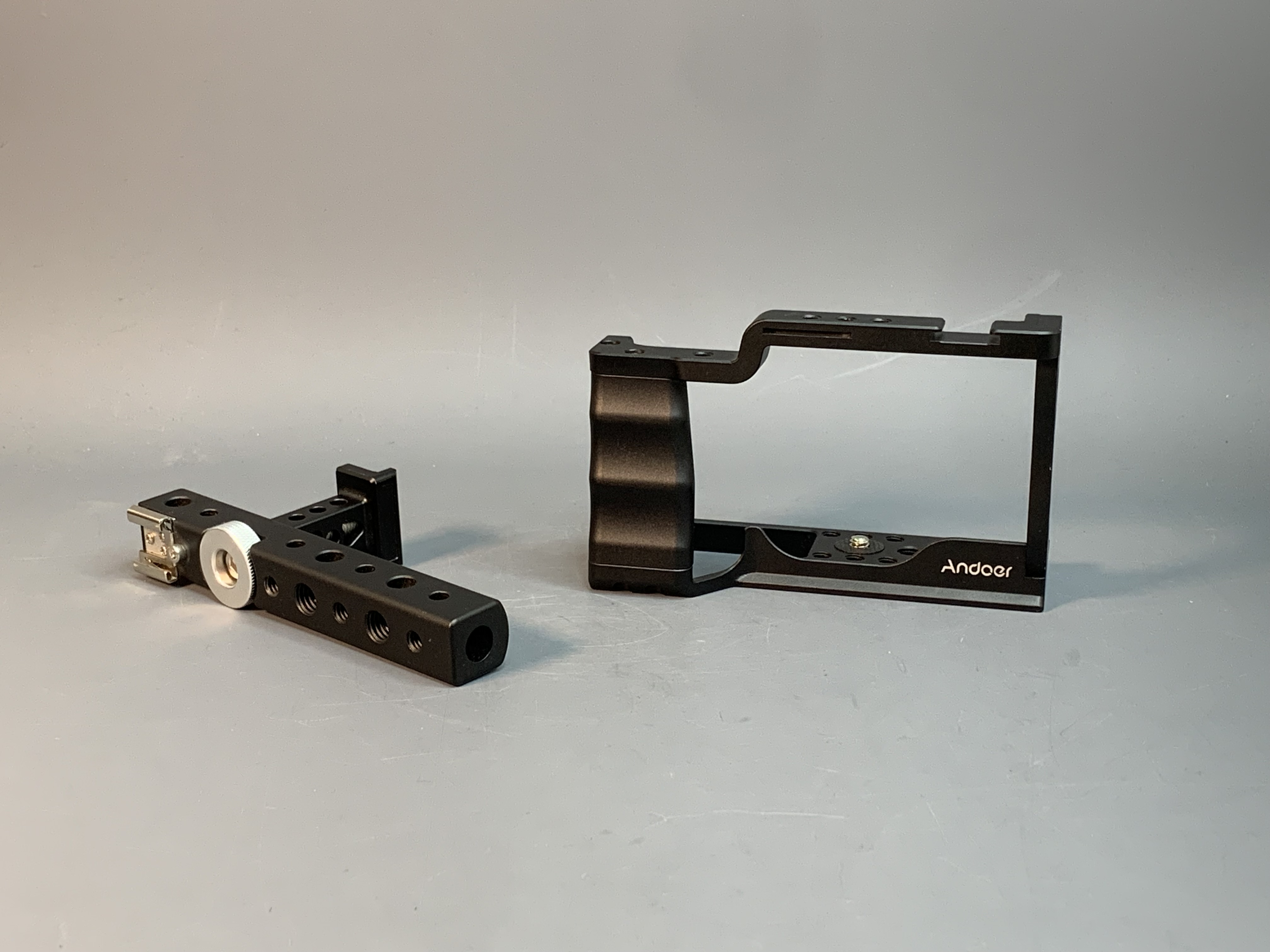 Прочная и долговечная клетка Andoer для Canon EOS M50 DSLR изготовлена из алюминиевого сплава. Имеет многочисленные отверстия под винты 1/4 дюйма и 3/8 дюйма для крепления дополнительных аксессуаров, таких как верхняя ручка, монитор и т. д. Крепление для холодного башмака позволяет установить мини-светодиодную лампу и микрофон, чтобы сделать вашу съемку более профессиональной. Противоскользящая накладка и винт 1/4 дюйма снизу обеспечивают устойчивость камеры и предотвращают появление царапин.