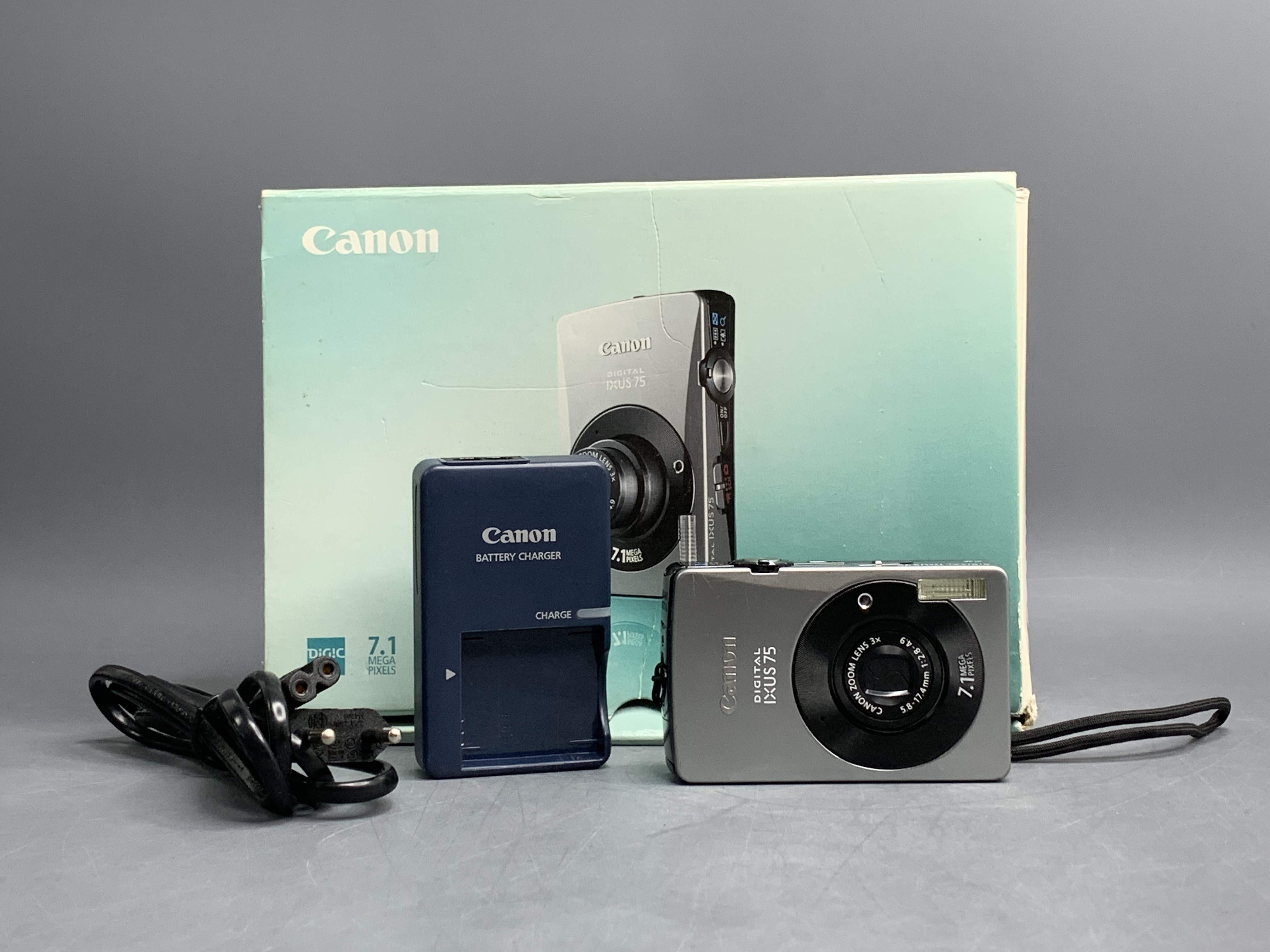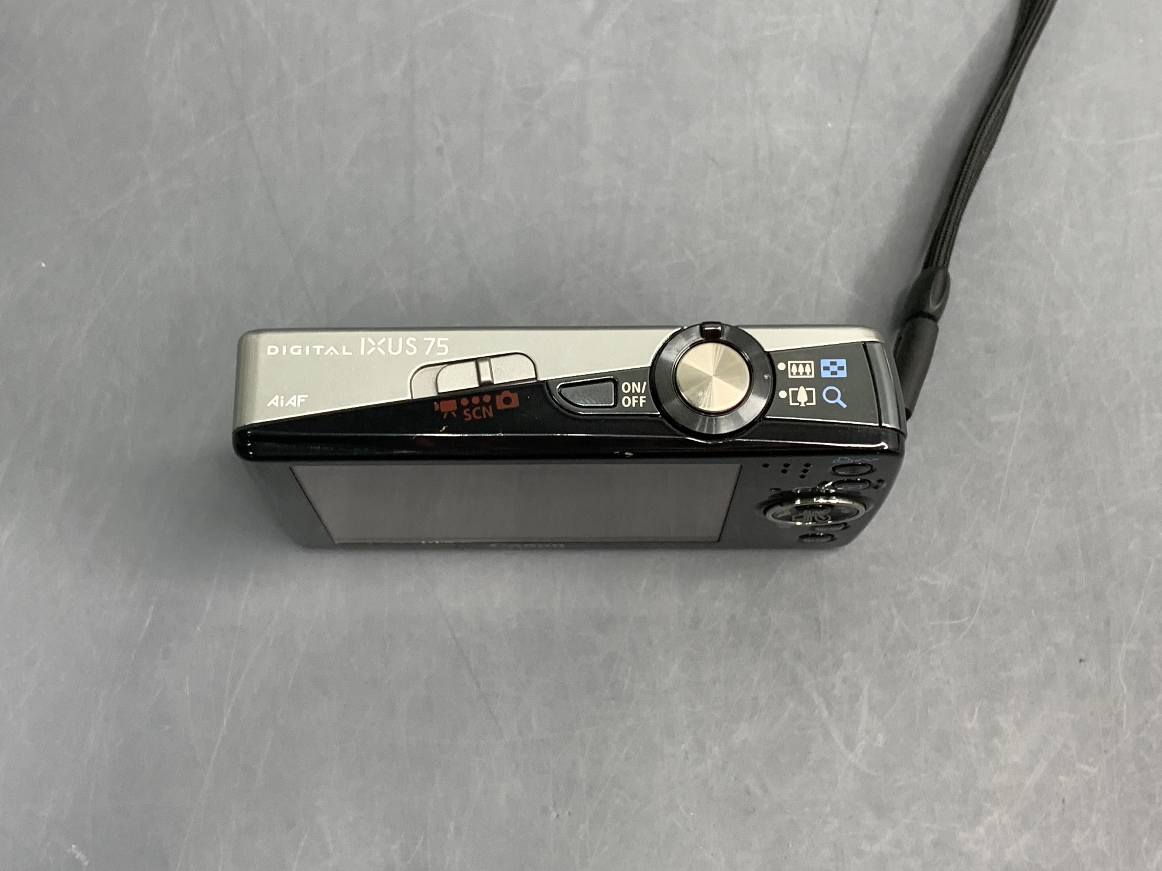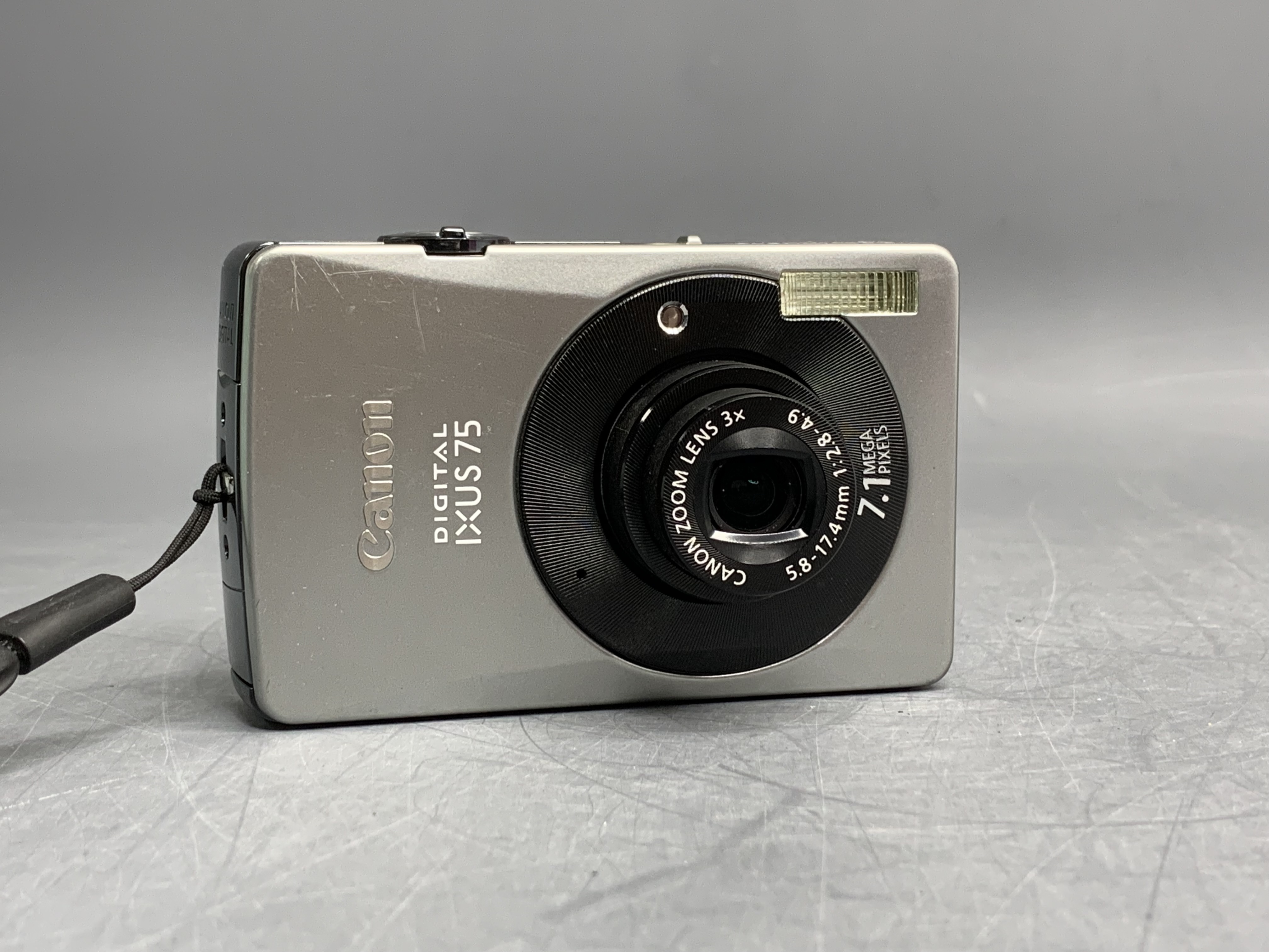IXUS 75 отличается стильным дизайном и сверхтонким корпусом (толщина 19.6 мм). Модель обладает 7,1-мегапиксельным сенсором и 3-дюймовым дисплеем. Оптическое увеличение - 3-кратное. IXUS 75 оснащена процессором DIGIC III и позволяет фотографировать при ISO 1600. Автоспуск затвора можно назначить через 10 сек, через 2 сек, а так же возможно вручную назначить время до спуска затвора (до 30 сек), как и количество снимков (до 10), которые будут сделаны с интервалом примерно в 3 секунды после первого снимка. Съемка может производиться с частотой 15 и 30 кадров в секунду. Разрешение видеосъемки можно выбрать из 2 вариантов — 320х240 или 640х480 пикселей. Использование оптического увеличения возможно. Так же следует отметить возможность видеосъёмки с интервалами (Time Lapse Movie).