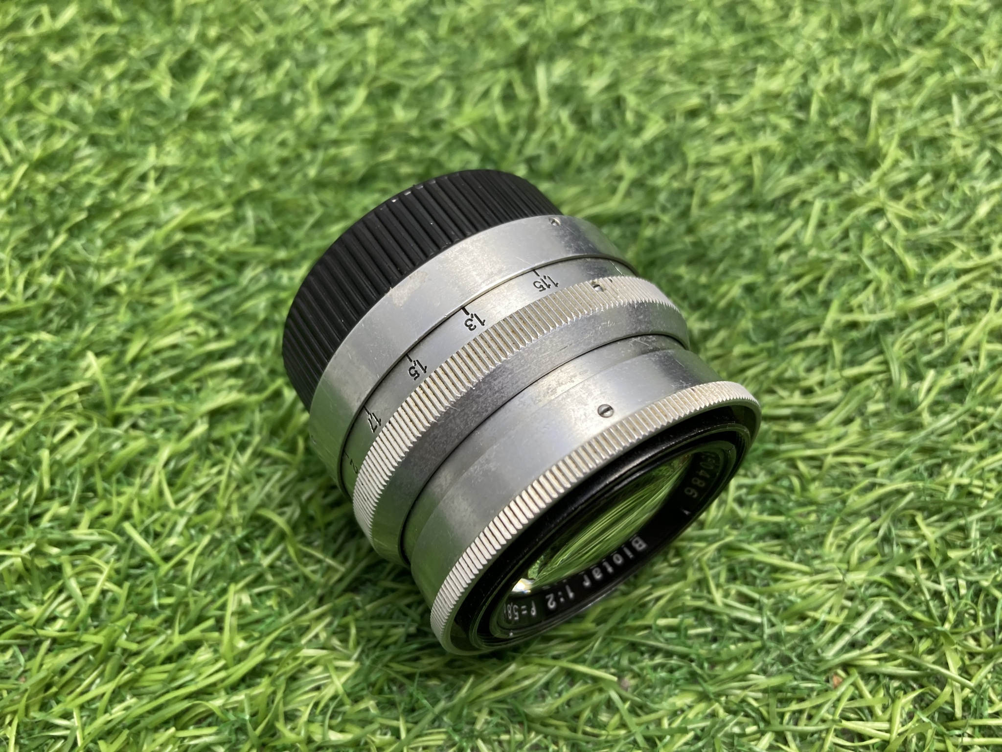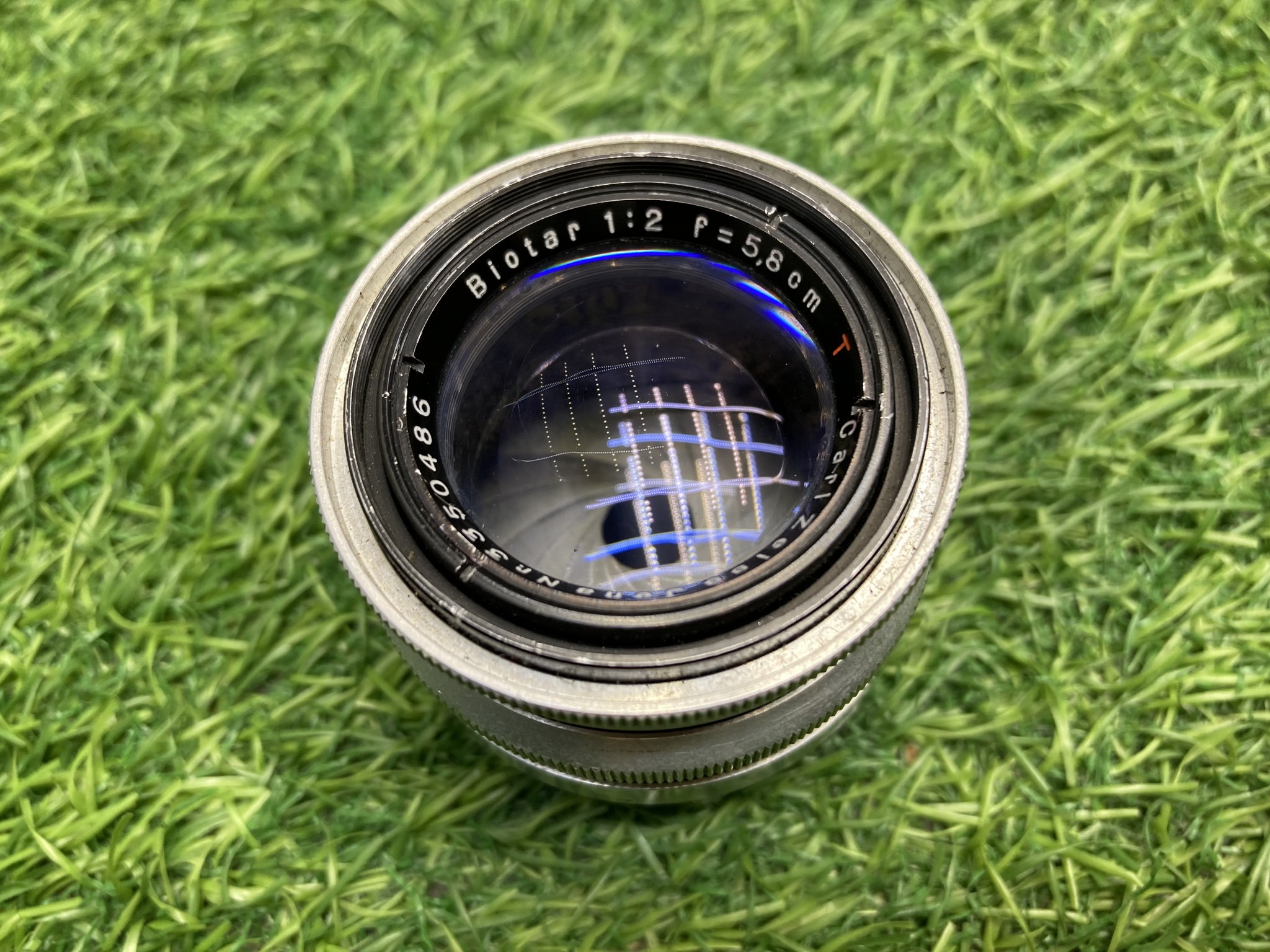 Объектив Carl Zeiss Jena Biotar T 58 mm f/ 2 в очень хорошем состоянии. Имеется несколько пылинок внутри не влияющих на изображение. 17 лепестков диафрагмы. Имеется налет под линзой.