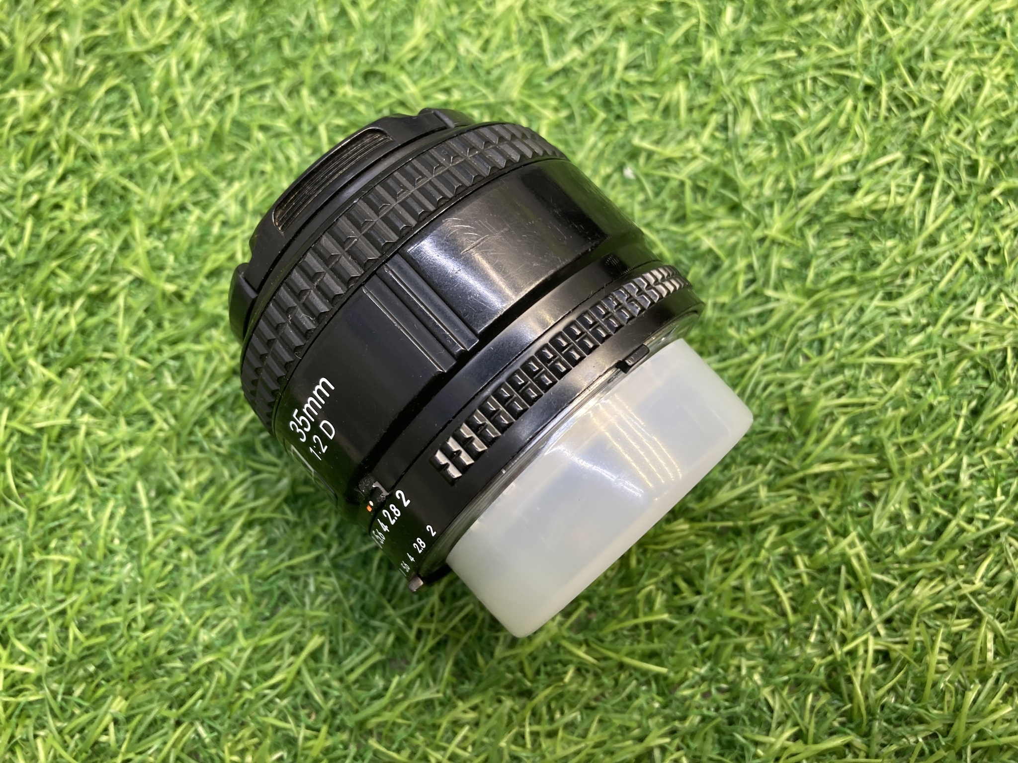 Объектив Nikon 35mm f/2D AF Nikkor в хорошем состоянии. Имеется царапина на внешней линзе.