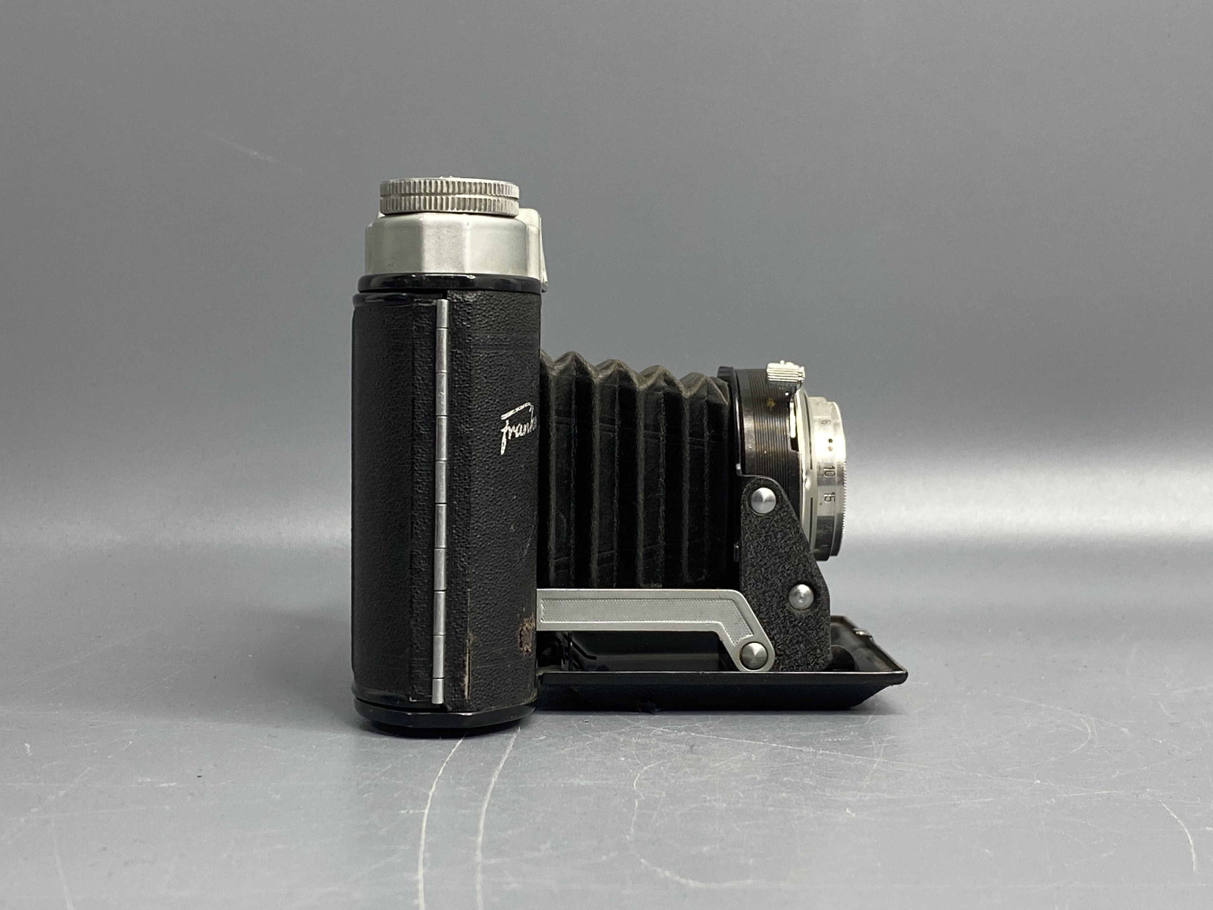 Объектив. Резкий просветлённый объектив Frankar-Anastigmat с диафрагмой f/6,3 и фокусным расстоянием 75 мм.