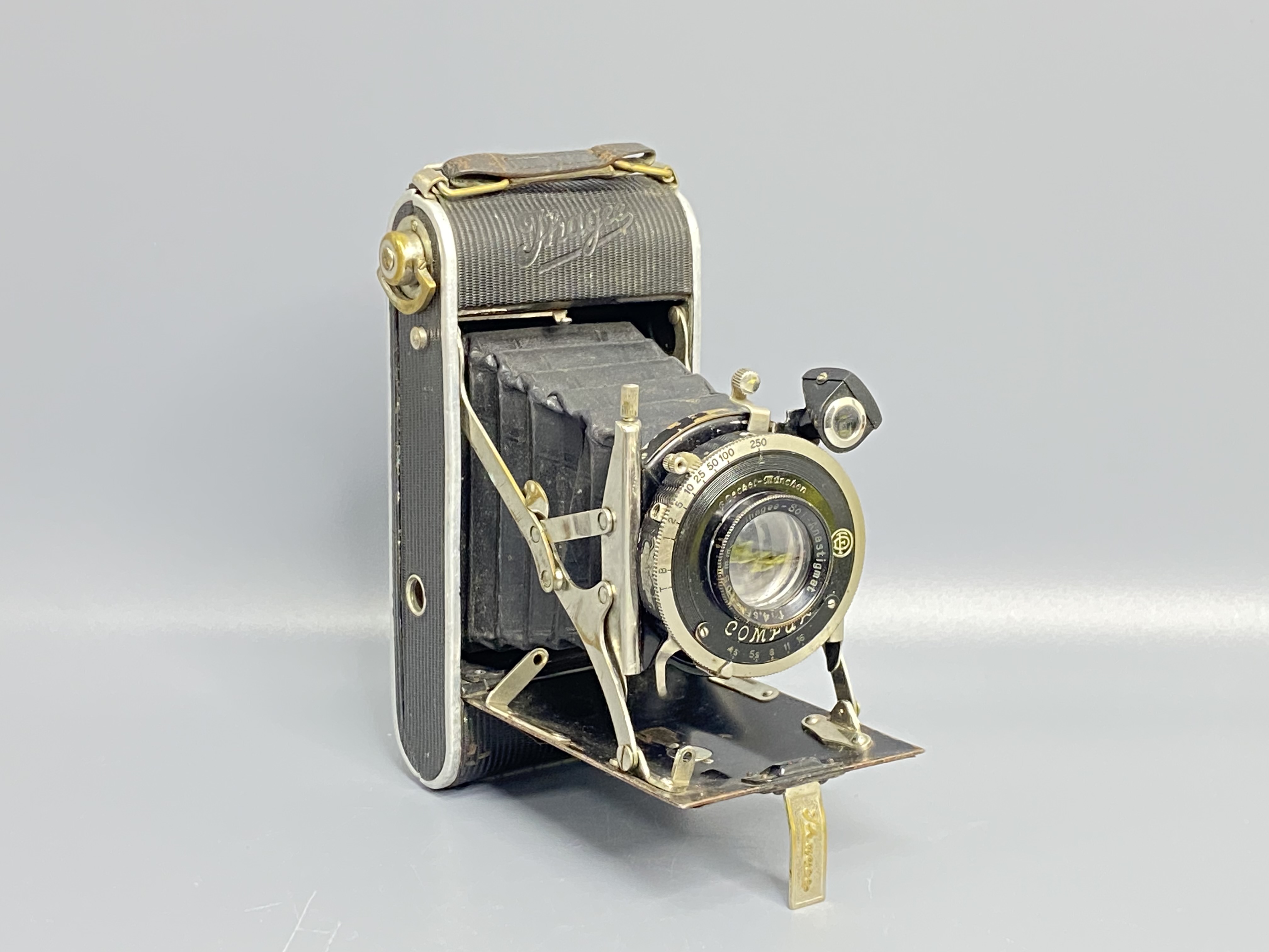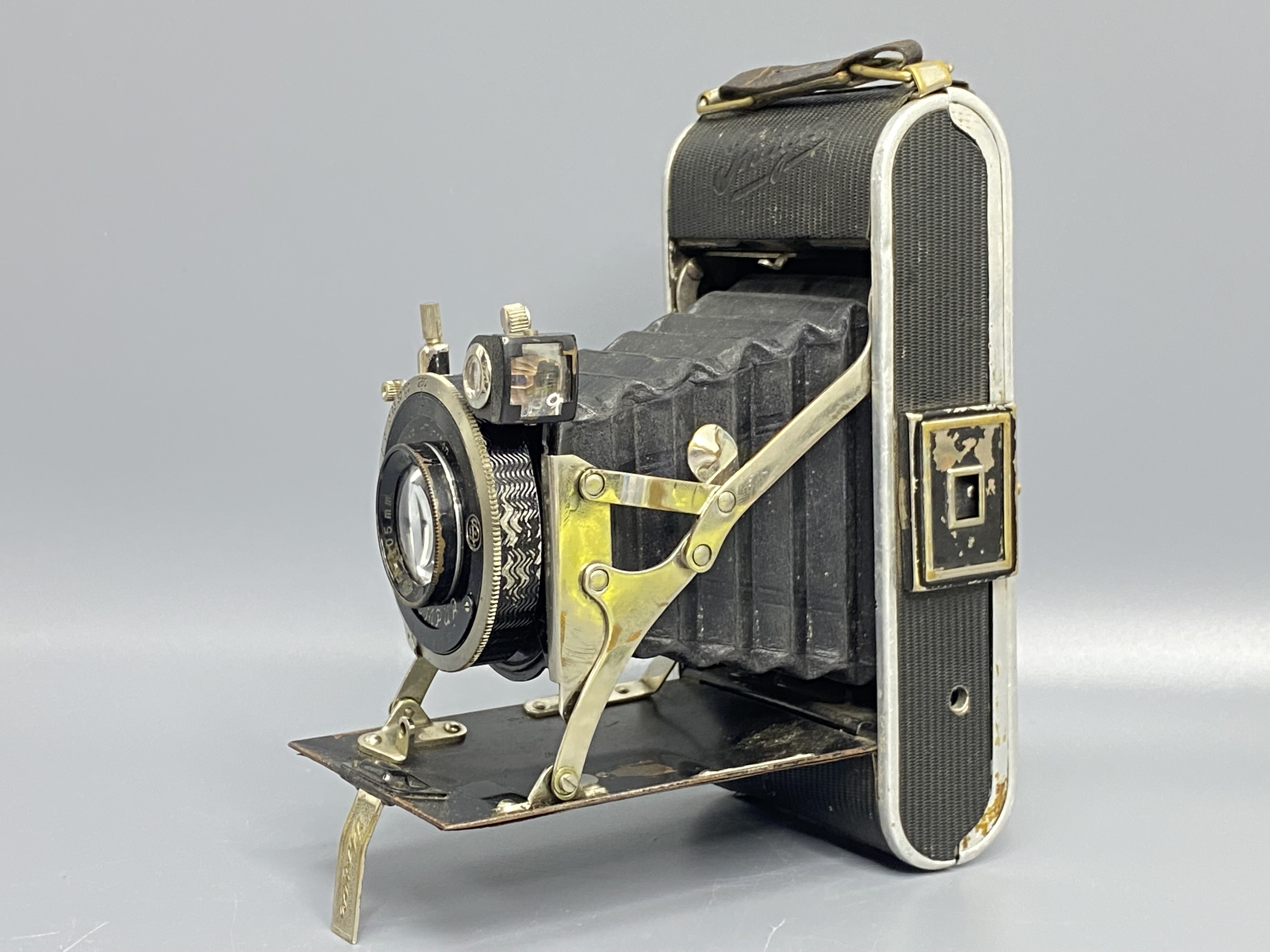 Объектив: Ihagee Anastigmat с фокусным расстоянием 105 мм (стандарт для 6×9) и светосилой f/4.5. Это качественная оптика, обеспечивающая отличную резкость.