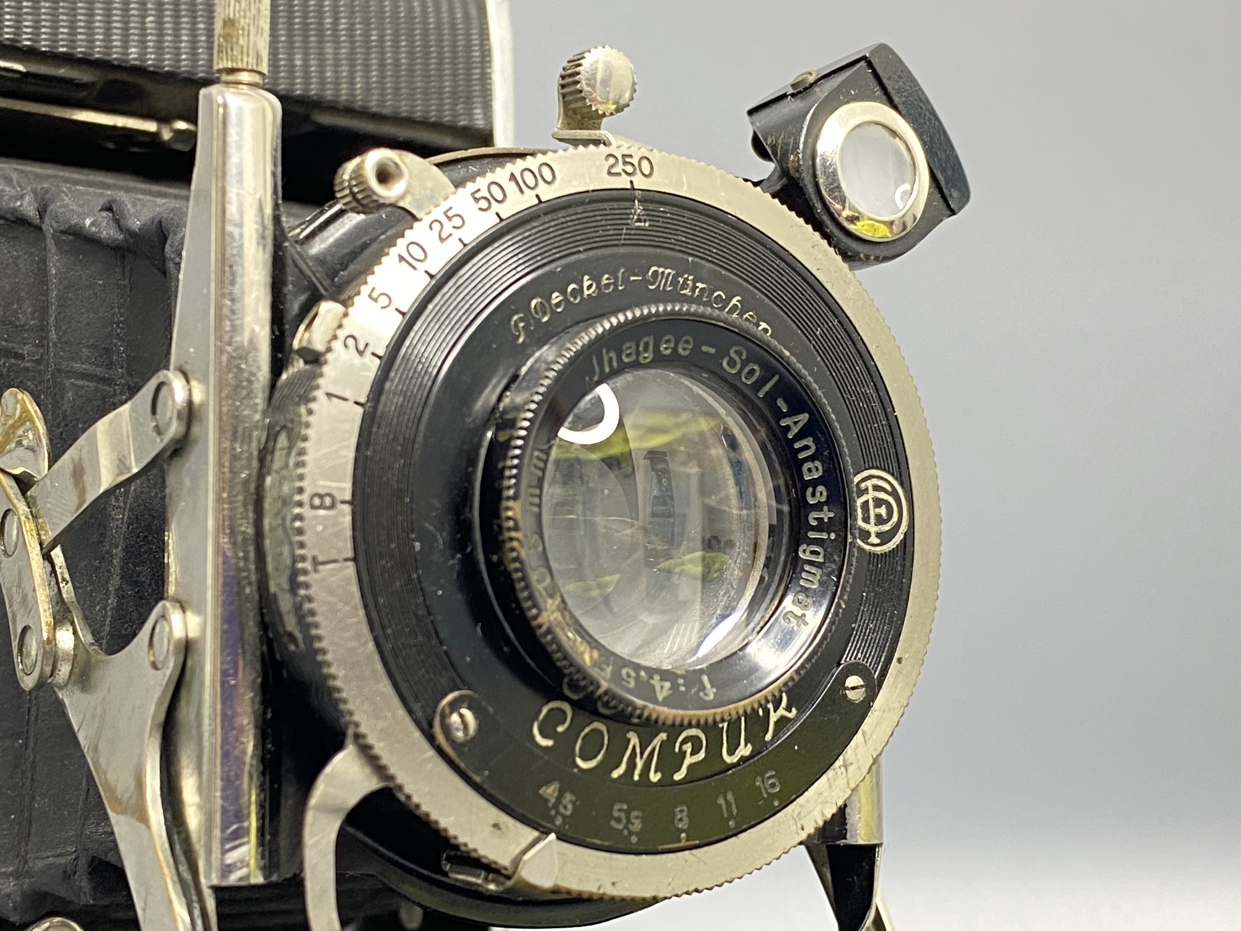 Затвор: Установлен легендарный Compur (видна надпись внизу объектива). Это самый надежный и точный механический затвор той эпохи. Он отрабатывает выдержки от 1 до 1/250 секунды, а также режимы T и B.