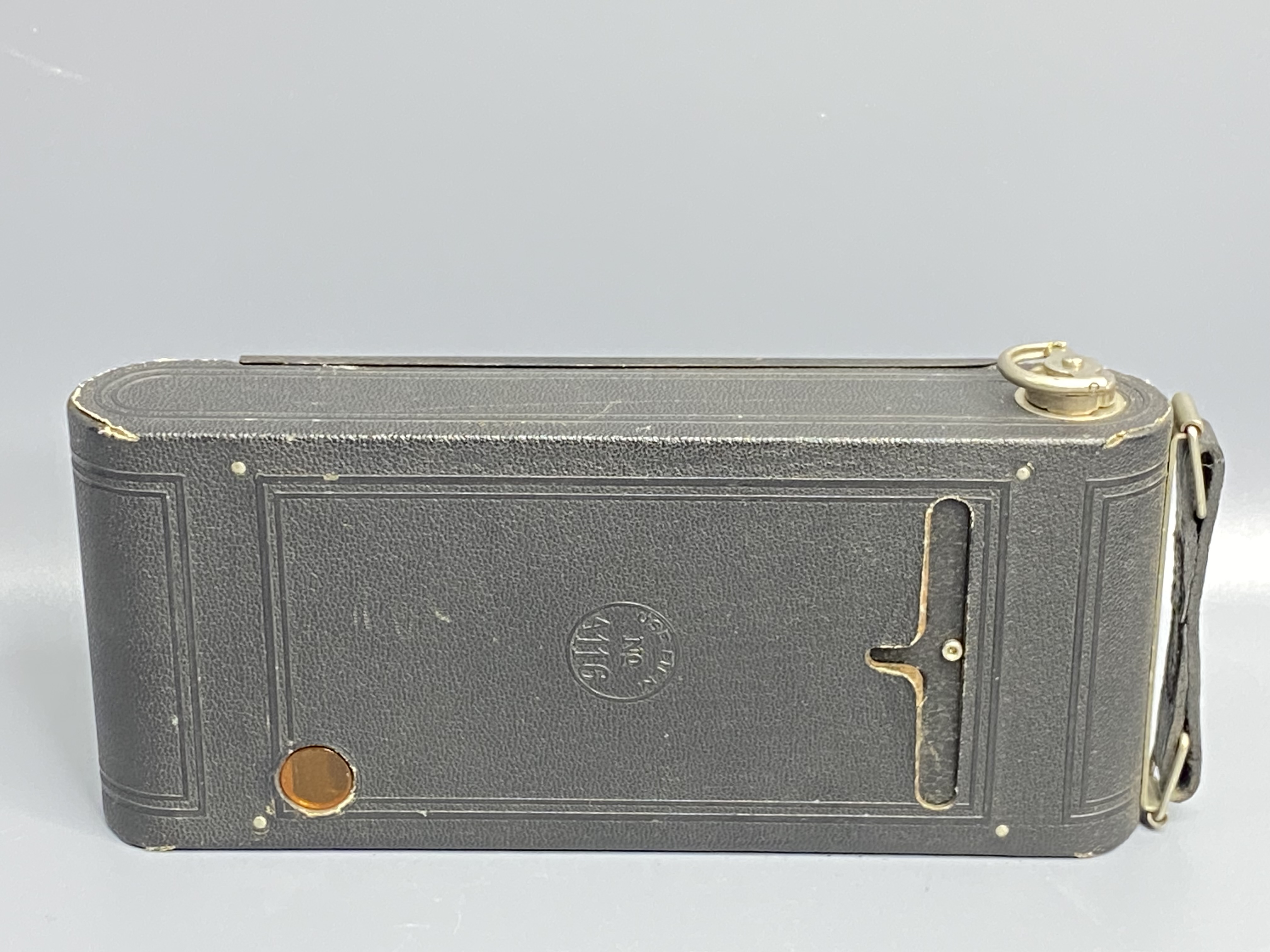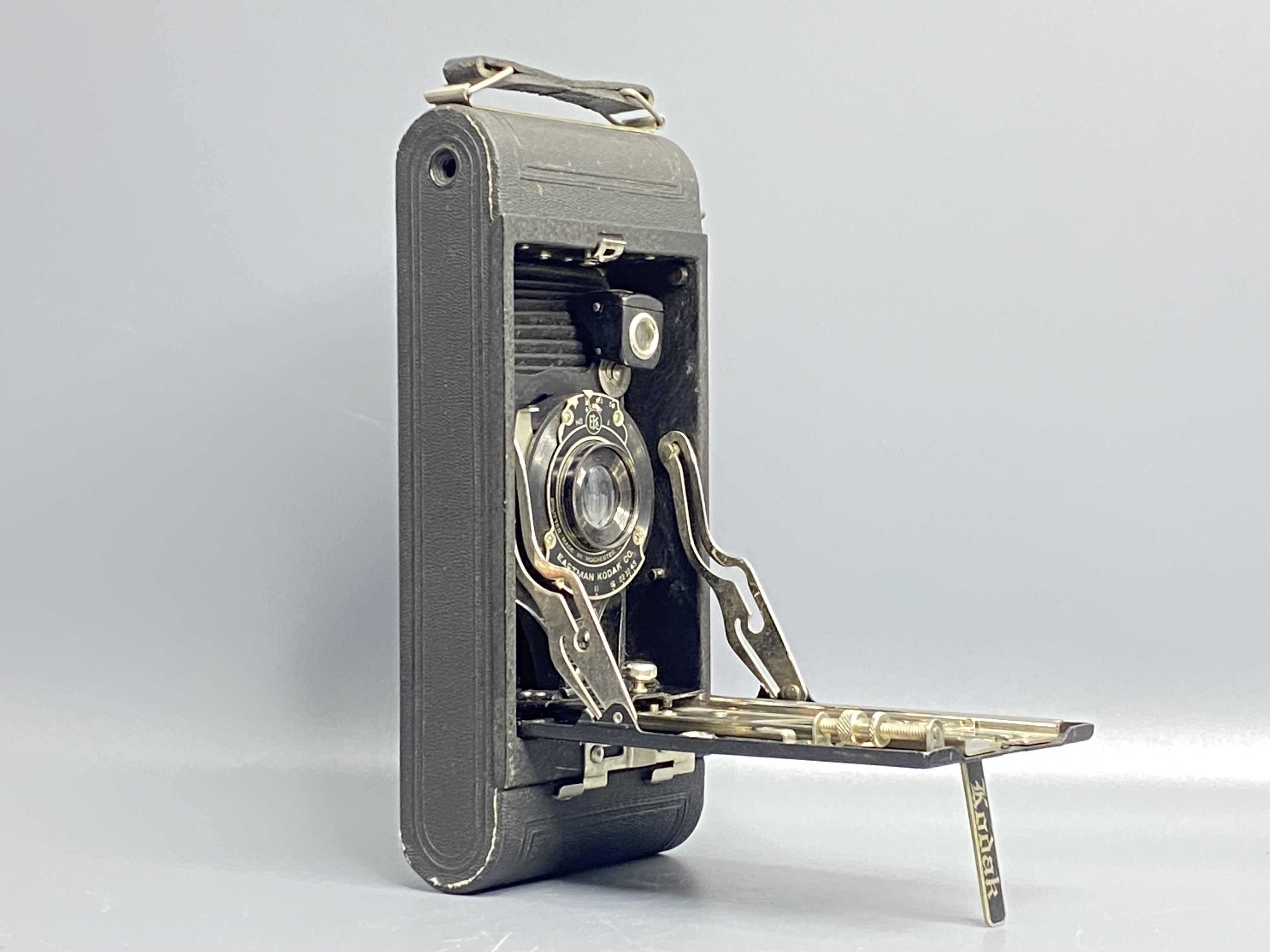 Этот фотоаппарат — No. 2 Folding Autographic Brownie от компании Eastman Kodak, выпускавшийся в Рочестере (США) в период с 1915 по 1926 год.