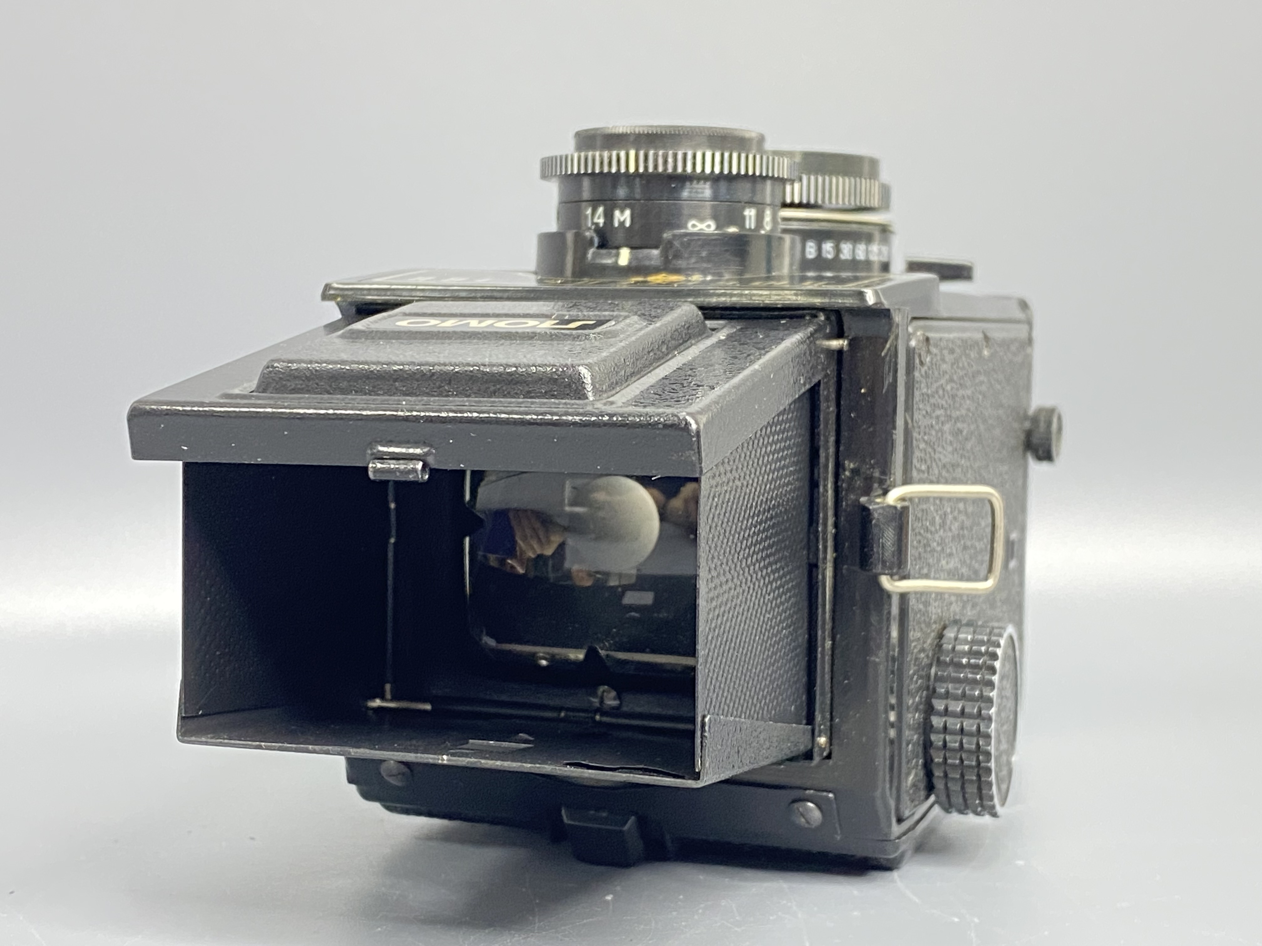 Видоискатель: Зеркальный, шахтного типа. Вы смотрите в него сверху вниз. Второй (верхний) объектив служит только для наводки на резкость.