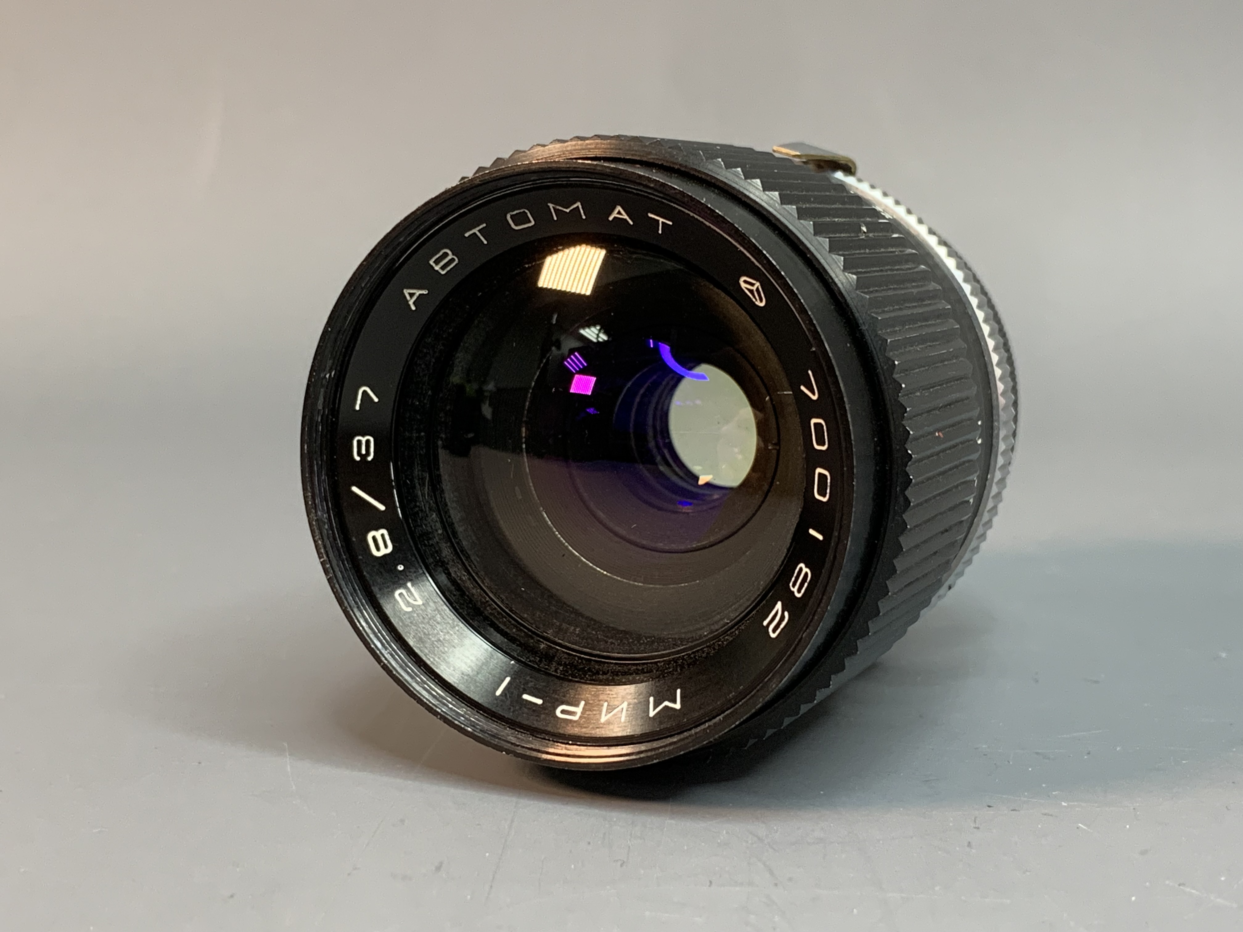 Мир-1 2,8/37 Автомат - широкоугольный объектив с постоянным фокусным расстоянием изготавливался только для 35мм зеркальных камер Киев-10 и Киев-15 с оригинальным байонетом диаметром 40мм и рабочим отрезком 44мм.