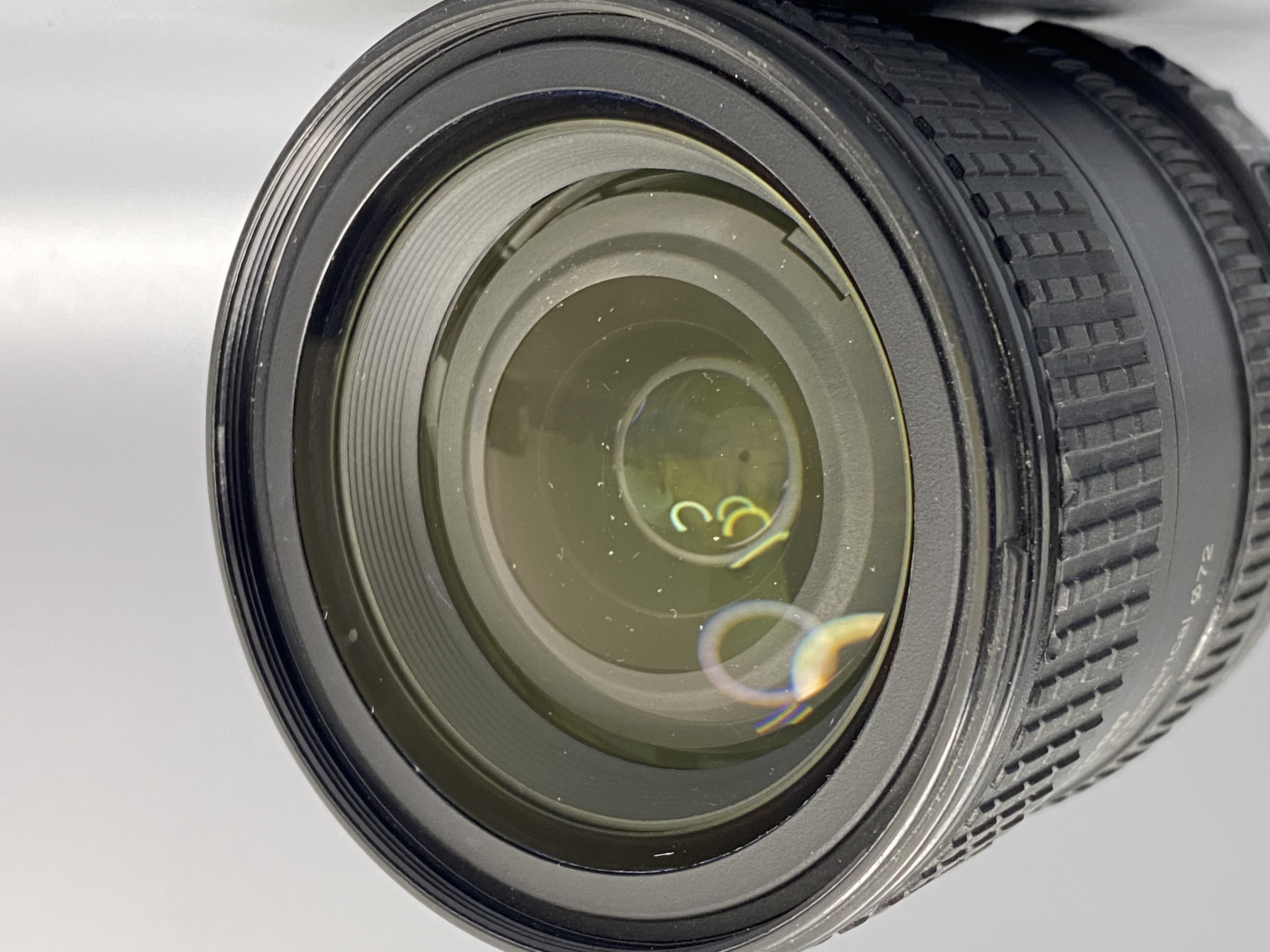 В полностью рабочем состоянии. Имеет пару царапин на линзе и несколько пылинок внутри.