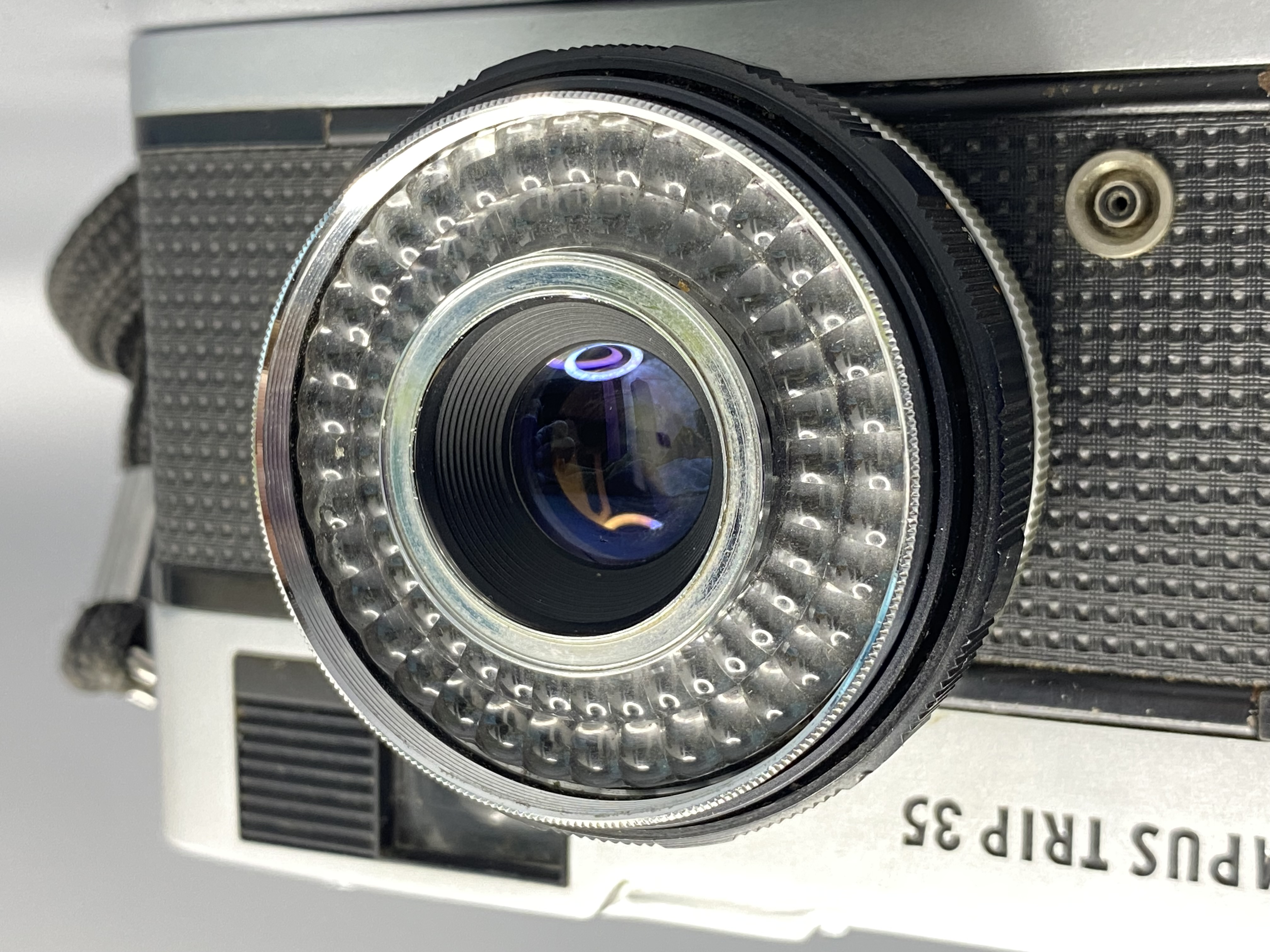 Полуавтоматический шкальный фотоаппарат Olympus Trip 35. Предназначалась для любителей путешествовать (камера очень легкая и компактная). Оснащёна встроенным селеновым экспонометром и отрабатывает всего две выдержки — 1/40 и 1/200. В автоматическом режиме работает как программный автомат, выбирая одно из двух значений выдержки и выставляя диафрагму от 2,8 до 22. Фотоаппрат оснащен несъёмным светосильным объективом Zuiko оптической схемы «Тессар» (4 элемента в трех группах), фокусное расстояние 40 мм, относительное отверстие 1/2,8. Объектив до сих пор ценится за свои характеристики, он обеспечивает высокую чёткость изображения даже по краям кадра, превосходя некоторые современные модели.