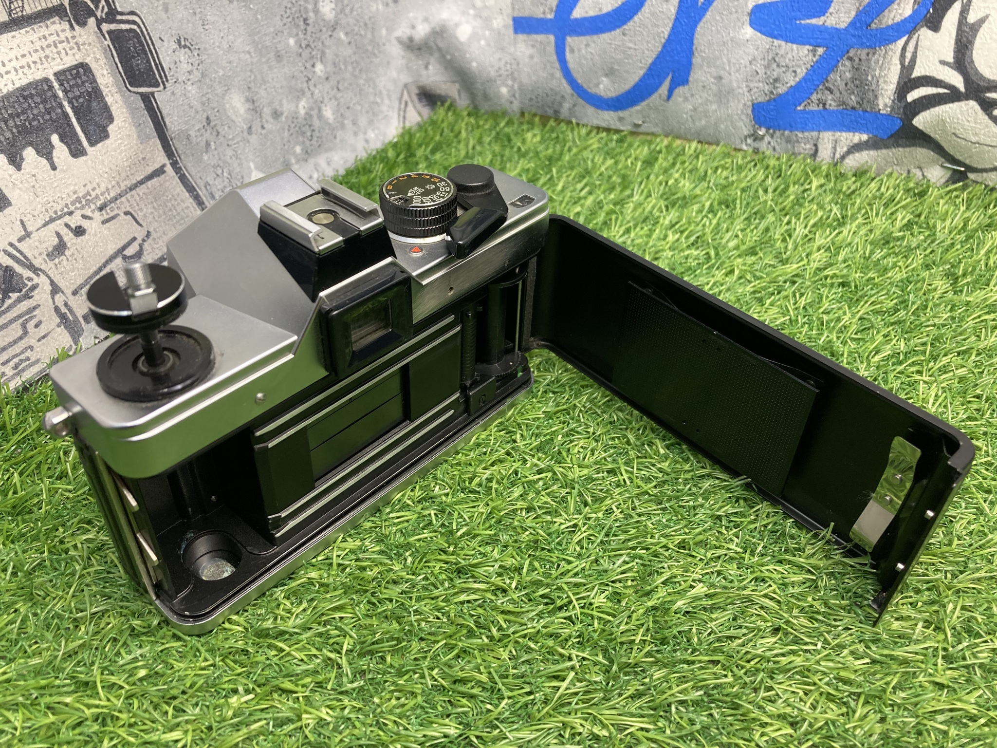 Смотка пленки рулеточного типа, режим смотки включается механической кнопкой на днище аппарата. Там же находится разъем под элементы питания экспонометра.