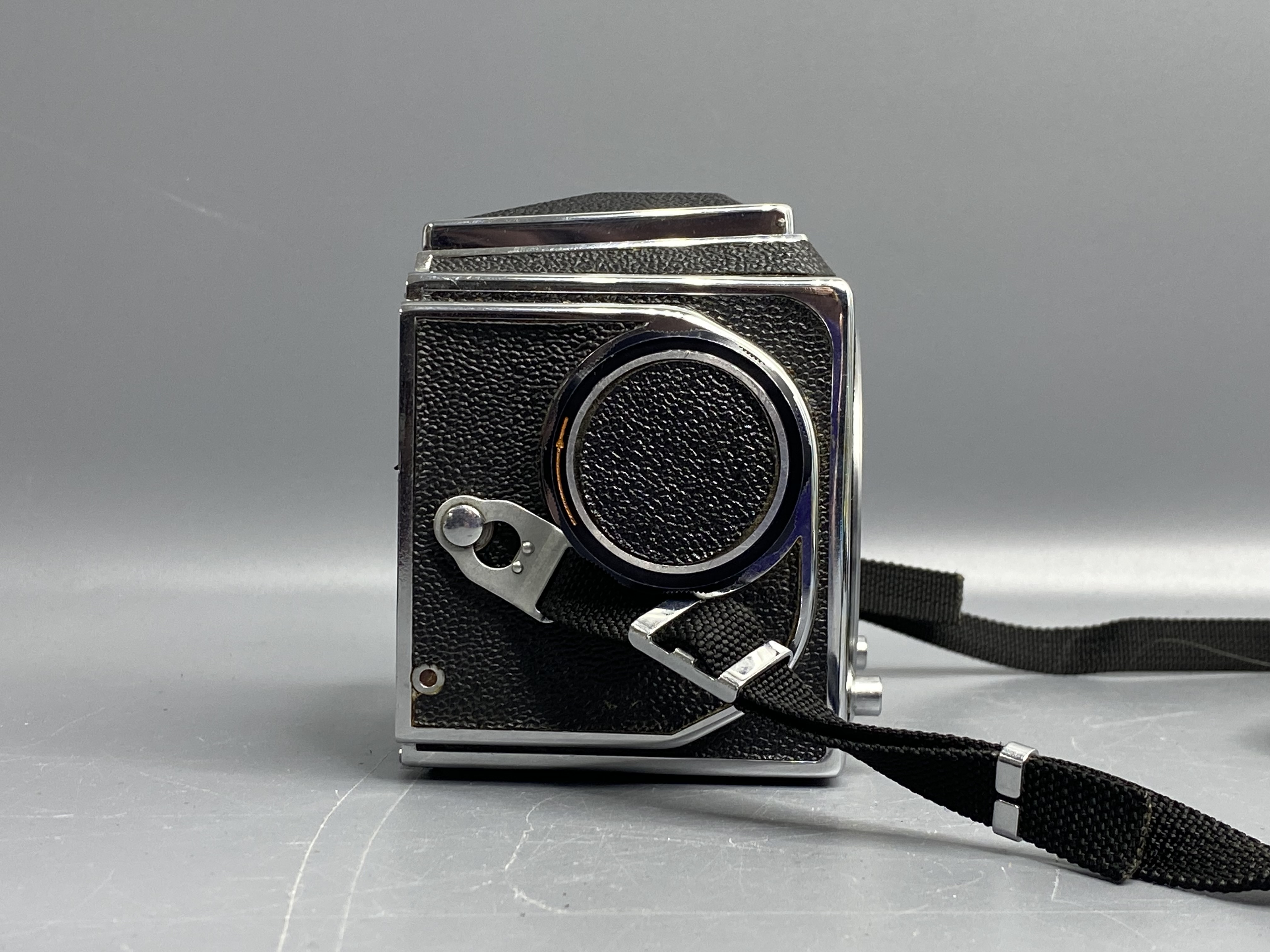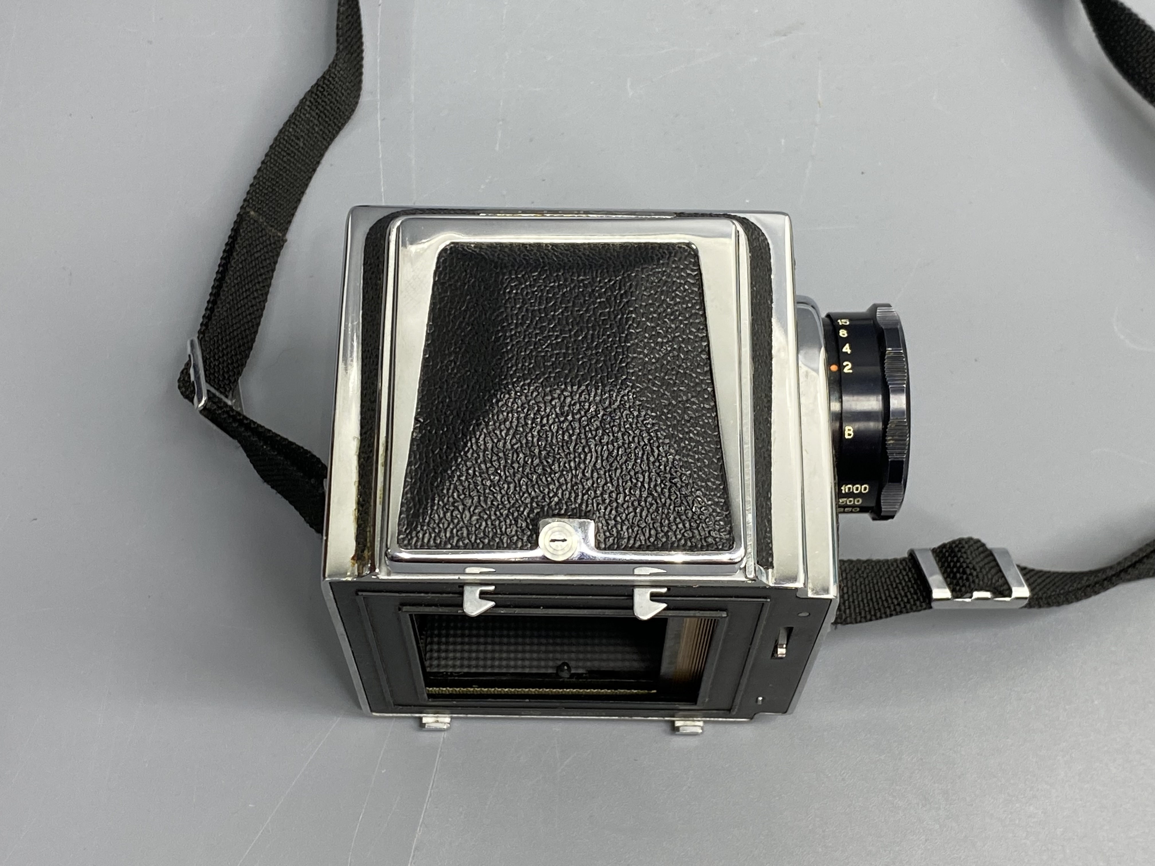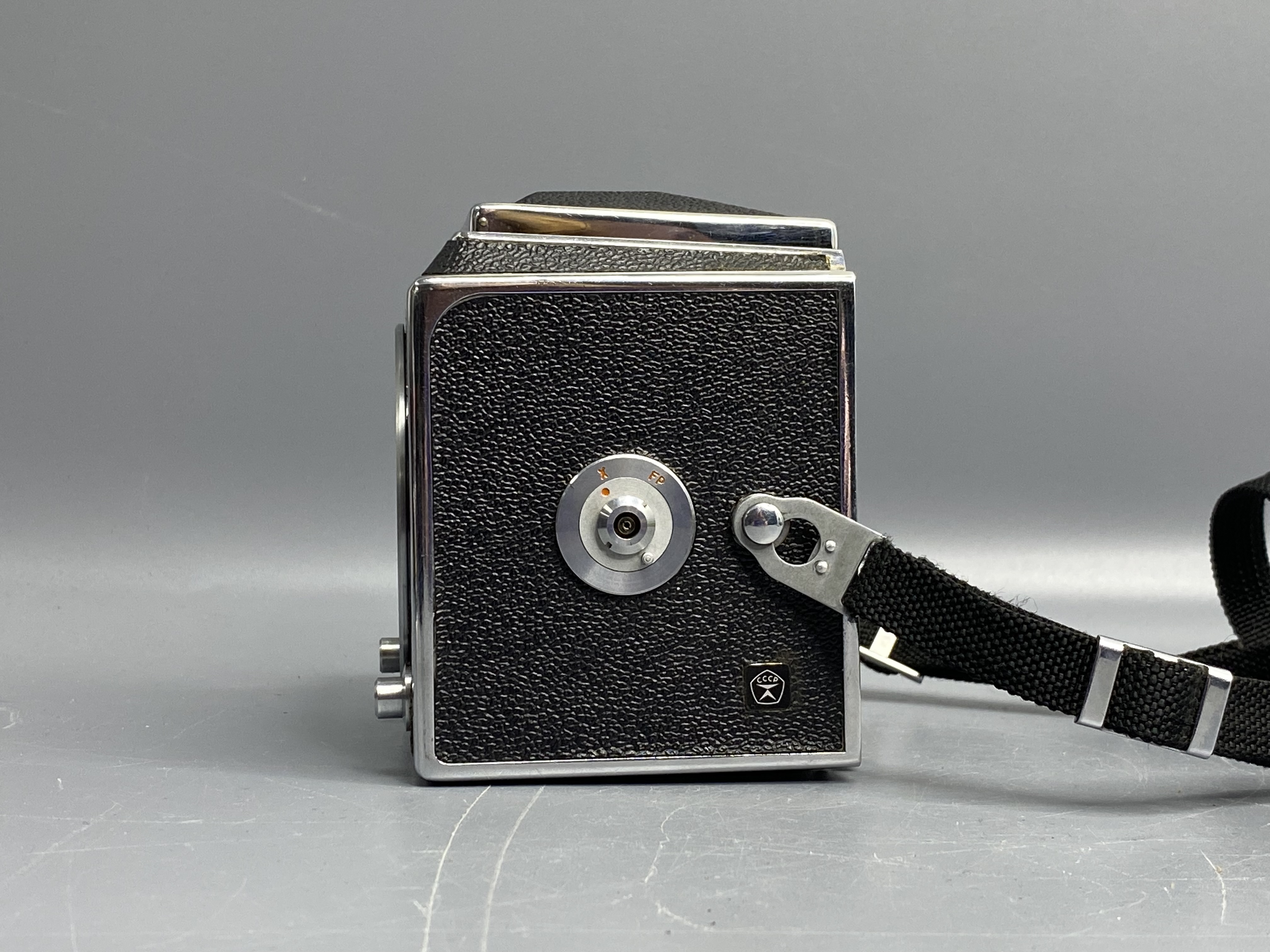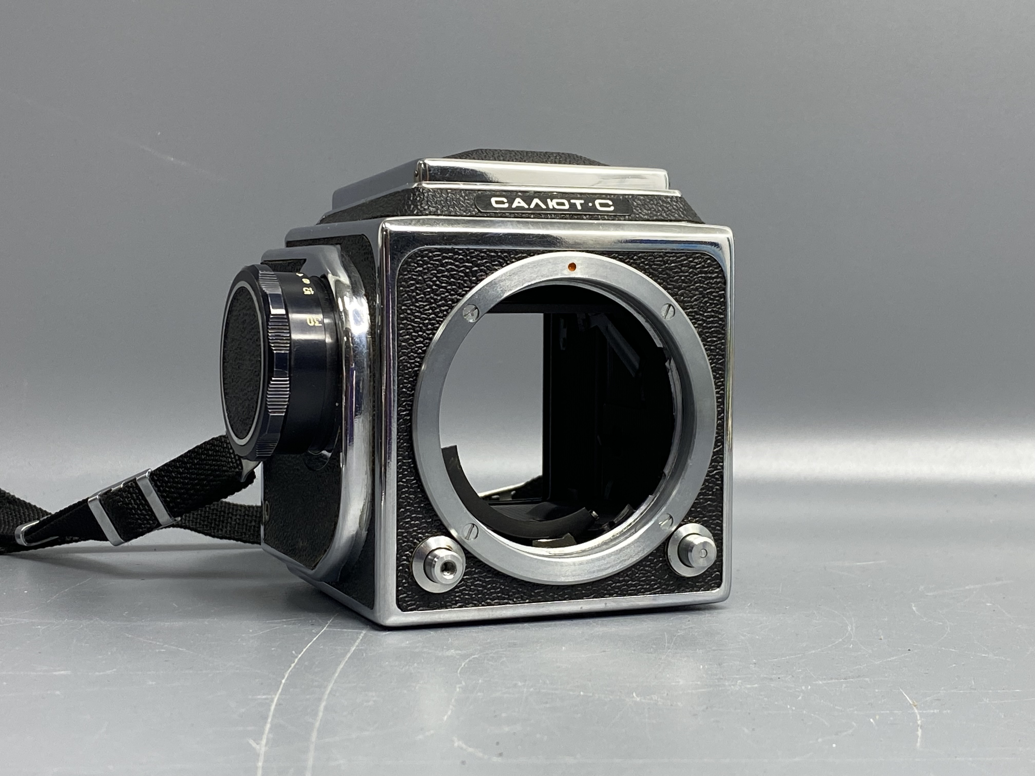 Салют-С — это одна из самых совершенных и престижных среднеформатных систем СССР, созданная на базе легендарного Hasselblad. Камера предназначена для серьезной художественной съемки на пленку типа 120, обеспечивая огромную площадь кадра (6х6 см) с невероятной детализацией и пластикой. Почему этот комплект выбирают ценители: -Сменный парк оптики: Байонет «В» позволяет использовать лучшие объективы советской эпохи. В комплекте идет штатный Вега-12В (90mm f/2.8) — объектив с великолепным рисунком, высокой резкостью и мягким размытием фона. -Модульная конструкция: Камера оснащена сменными кассетами (магазинами) для пленки, что позволяет мгновенно переходить с ч/б на цвет или с одной чувствительности ISO на другую прямо в процессе съемки. -Шахтный видоискатель: Большая и светлая шахта с лупой превращает процесс кадрирования в настоящее эстетическое удовольствие, позволяя полностью контролировать композицию. -Это полностью механическая камера, не зависящая от батареек.