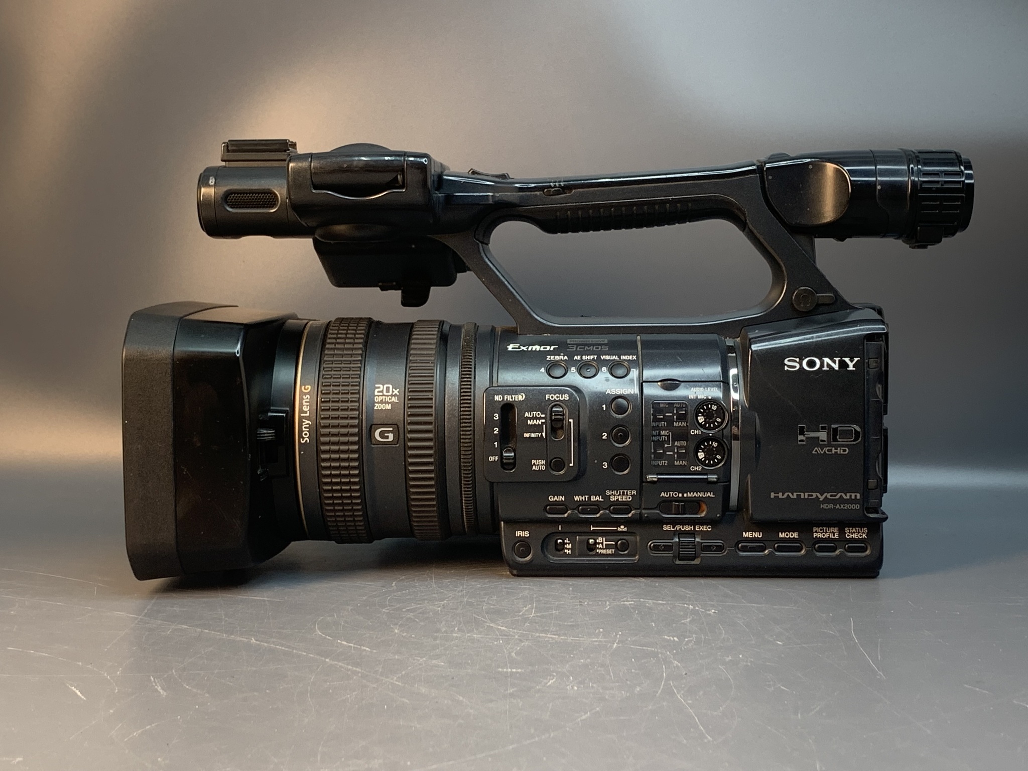 Видеокамера Sony HDR-AX2000E в хорошем состоянии, присутсвуют следы использования на корпусе и дисплее, потертости. В комплекте аккукумулятор и чехол. Камера Full HD: 2 слота MS для непрерывной съемки, объектив G с 20x опт. зумом, матрица Exmor 3CMOS. Камера снабжена фотографичным сенсорным широкоформатным экраном с разрешением 921 тыс. точек с высокой контрастностью и широким углом обзора. А электронный цветной видоискатель с высоким уровнем контрастности и разрешением 1227 тыс. точек позволяет детально рассмотреть снимок. Система стабилизации – оптическая. В камкордере присутствует независимые кольца зума, фокусировки и диафрагмы. В камере добавлены разъемы XLR для записи более качественного звука. Присутствуют семь программированных кнопок под более удобную настройку AX2000E. Материалы обрабатываются функциями Cinematone Colour и Cinematon Gamma. Присутствует оптический режим Steady Shot Active Mode. Камера снимает 24 Мб/с – самое высокое значение для формата AVCHD..