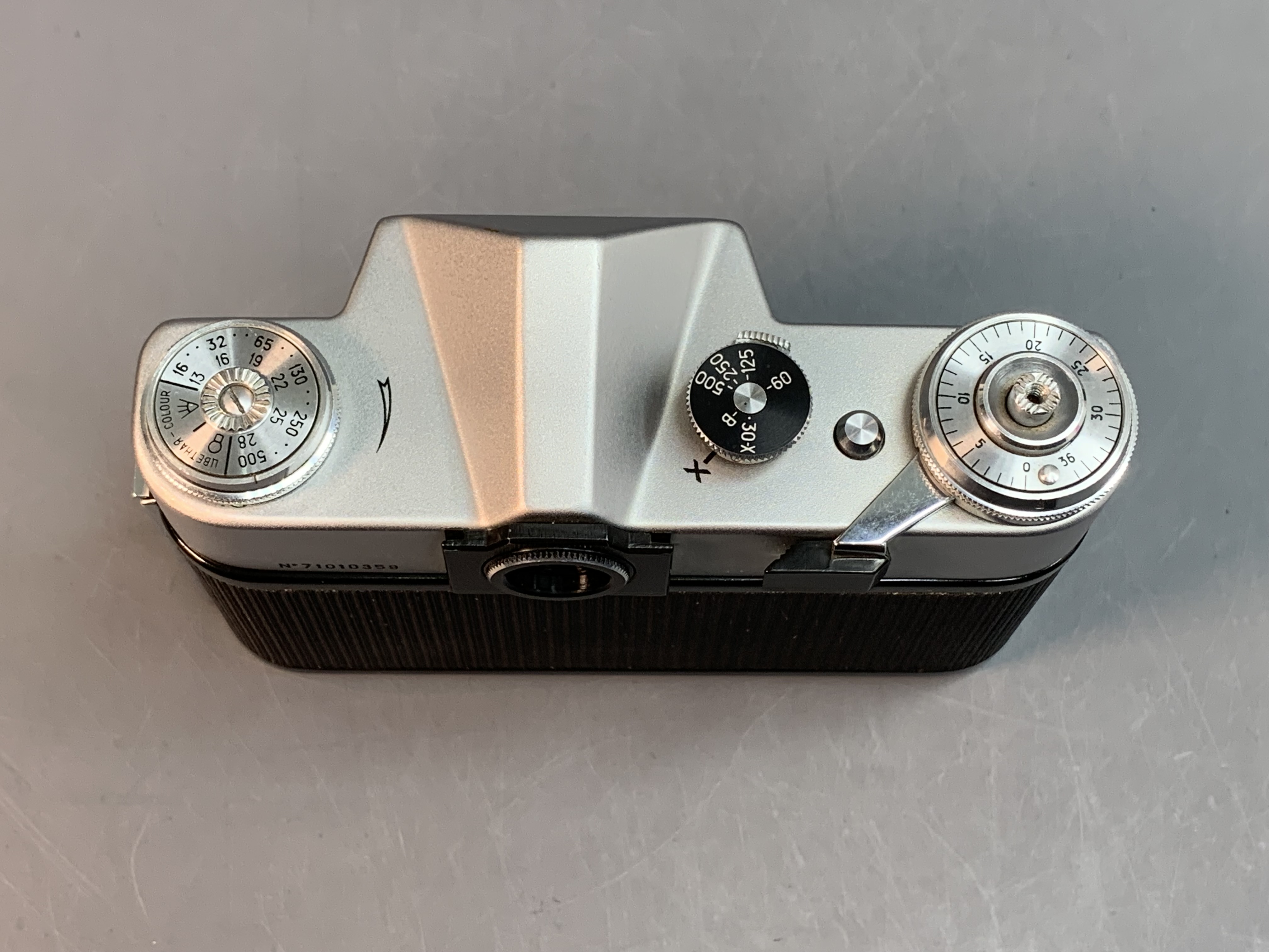 затвор — механический, шторно-щелевой, с горизонтальным движением матерчатых шторок;